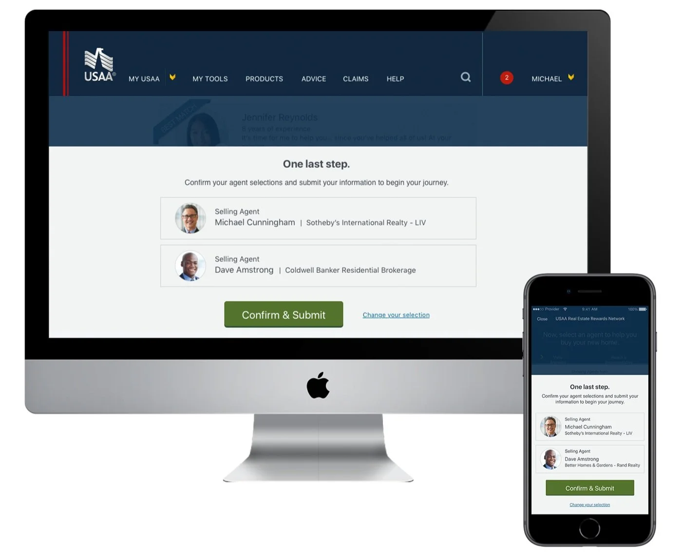 These microcopy improvements illuminated the final step of the USAA real estate agent finder tool.