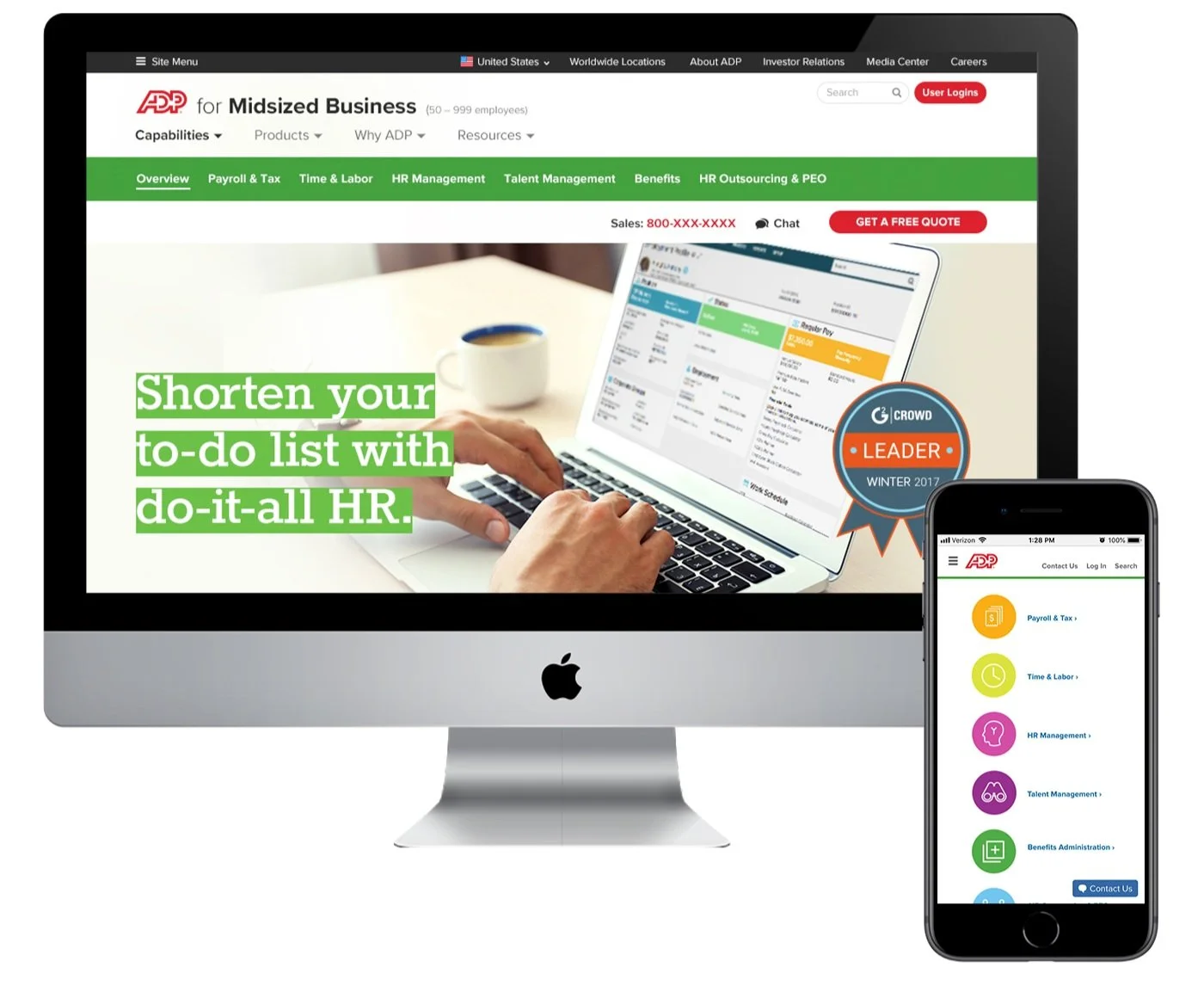 This website refresh simplified the ADP midsized business experience and increased leads.